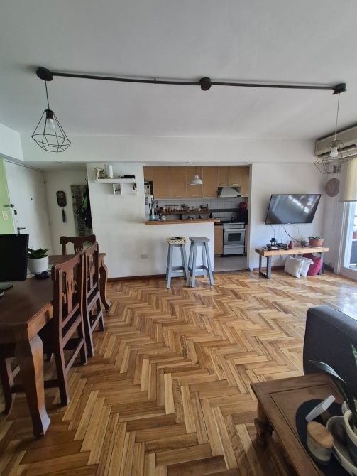 Cuenta con living comedor muy cómodo y luminoso, con pisos de parquet y aire acondicionado.