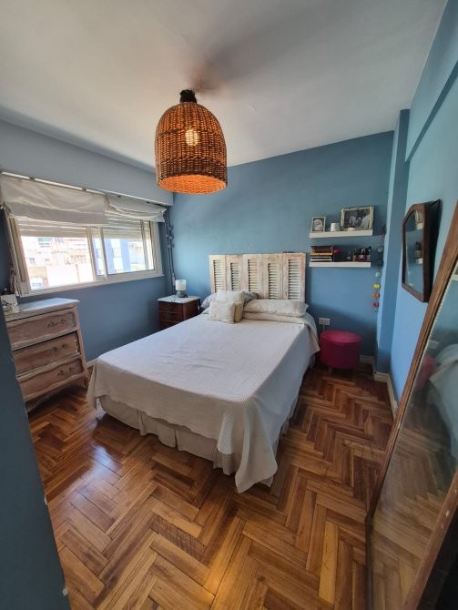 Dos dormitorios muy luminosos con pisos parquet y placard. El principal posee Aire Acondicionado.