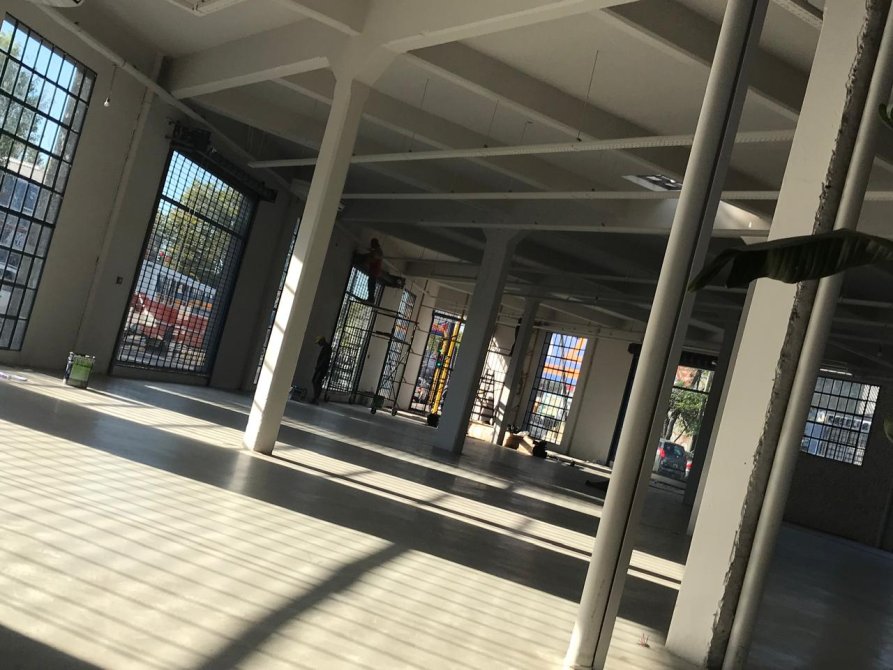 Posee un gran salón con una superficie total de 880 m2. Baño. Pisos de cemento alisado.