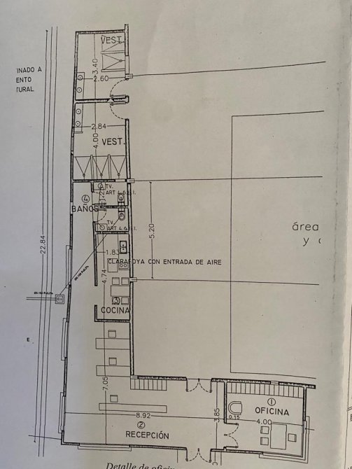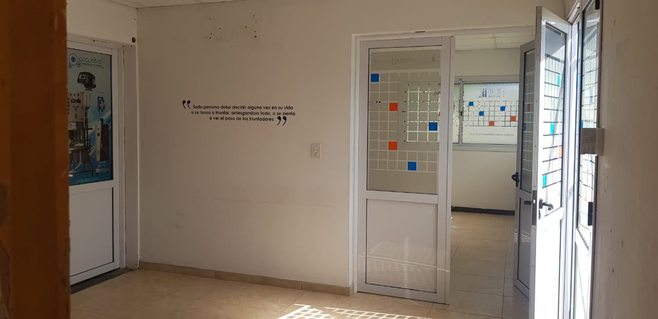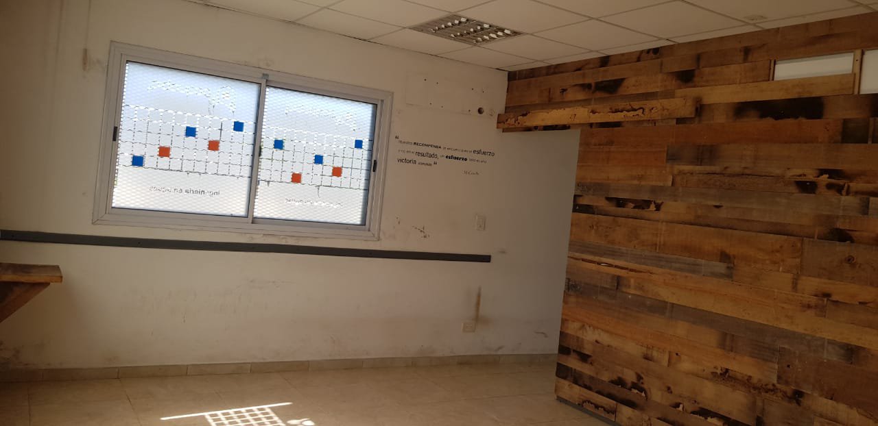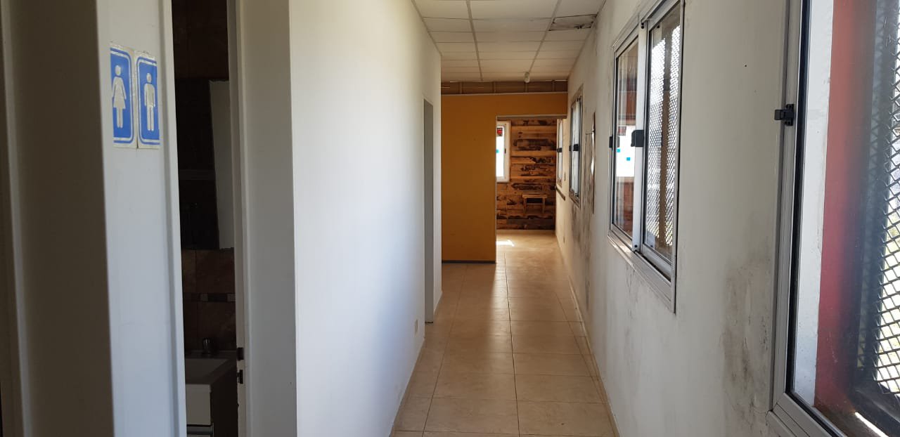 Al frente posee una recepción con acceso directo al galpón, una oficina privada, y un pasillo distribuidor a la cocina y dos baños. Todos los ambientes con ventanas y rejas.