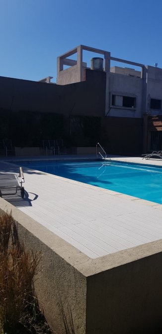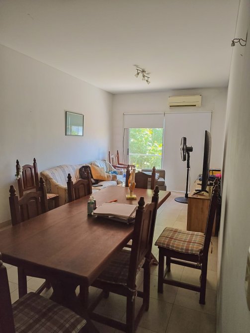 Living comedor con piso cerámico y puerta ventana a balcón. Aire Acondicionado.