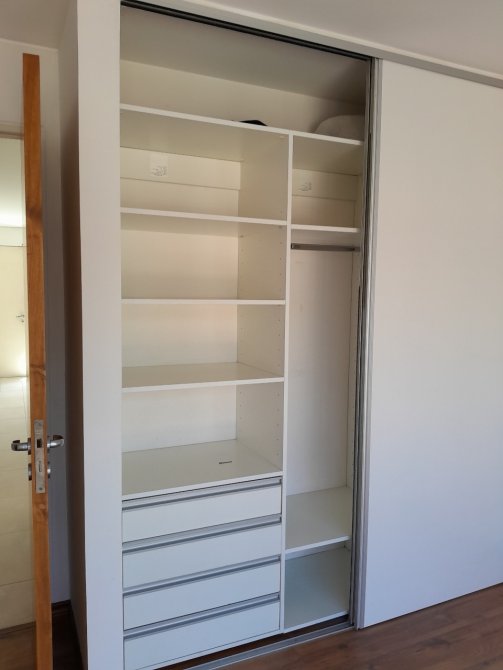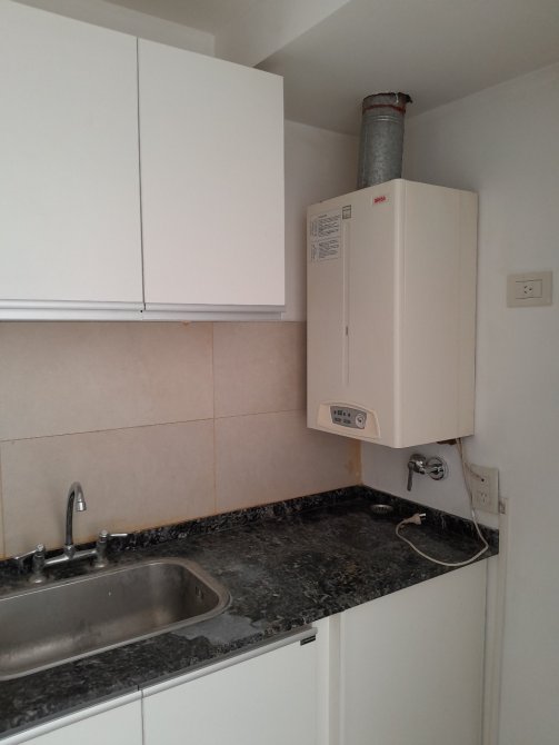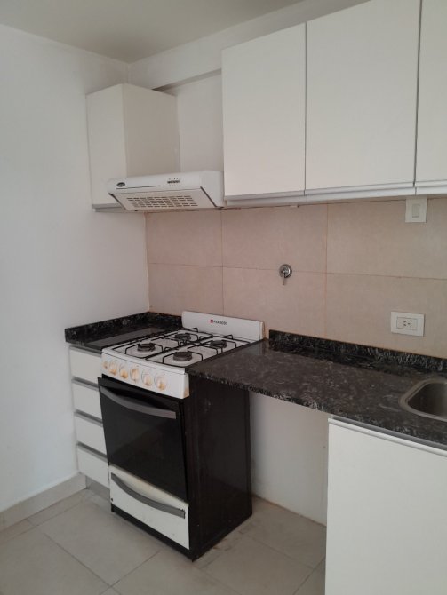 - Cocina con muebles bajo y sobre mesada con espacio y conexión para lavarropas.
