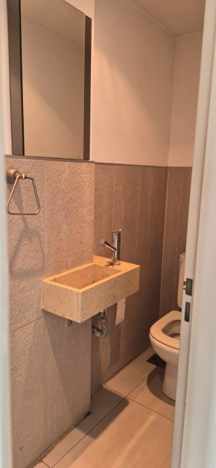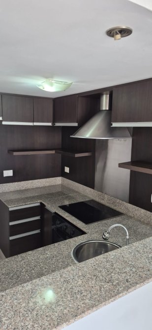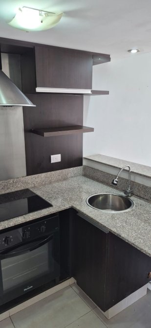 -Cocina con muebles bajo y sobre mesada con campana de acero. Anafe y horno eléctrico.